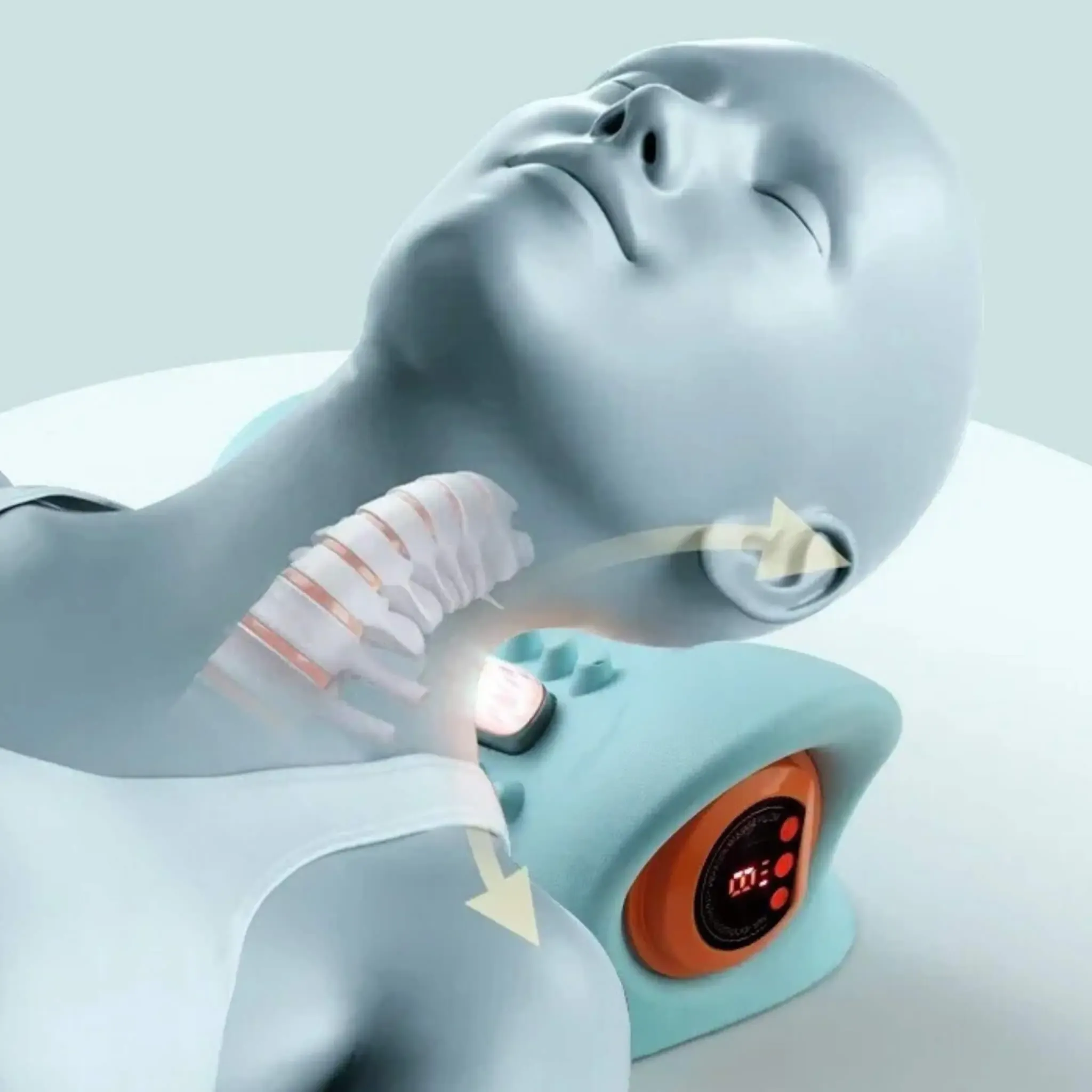 The cervical spine is gently stretched and relieved, releasing painful pinched nerves and providing near-instant pain relief.